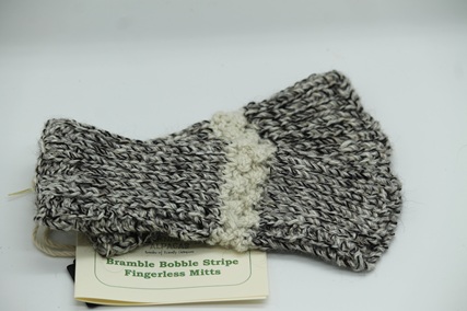 Ooze elegance and stay snugly warm with these bramble bobble stripe fingerless mitts, hand knitted in natural fibre from our prize winning Barnacre Alpaca yarn. These fingerless mitts are available in a variety of colours.